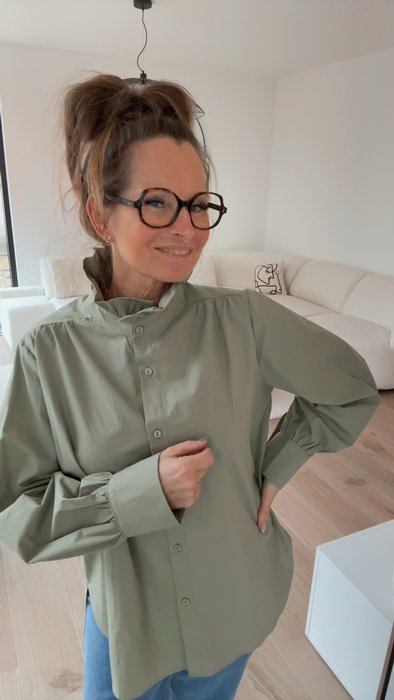 Vanessa la Tropezienne > Chemises -Tuniques & blouses < > X Chemise ANOUCHKA olive Référence produit : 68699800 Chemise ANOUCHKA olive Coupe droite Détail de son col montant volanté 50% coton - 50% polyester Conseil de lavage: consulter l étiquette avant lavage La taille S/M convient pour du 34/36 ou 38, et la M/L pour du 40/42 Vanessa fait un 36, mesure 1m63 et porte la taille S/M Taille : S/M M/L 32 € Quantité : 1 Retour à la catégorie - Chemises -Tuniques & blouses