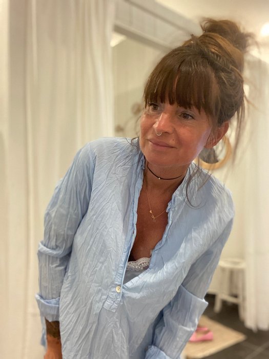 Vanessa la Tropezienne > Chemises -Tuniques & blouses < > X CHEMISE FANNY BLEU Référence produit : 91986950 CHEMISE FANNY BLEU BANDITAS FROM MARSEILLE CHEMISE COUPE DROITE - COL V - EFFET FROISSÉ FERMETURE BOUTONS NACRÉS SUR LE DEVANT ASPECT VOILE DE COTON FABRICATION ITALIENNE GUIDE DES TAILLES Taille 1: convient du 34 au 38/40 Taille 2: convient du 40 au 42/44 COMPOSITION: Coton 100% ENTRETIEN: CONSULTER LÉTIQUETTE AVANT LAVAGE Taille : 36 € Ce produit n'es plus disponible dans cette taille. Retour à la catégorie - Chemises -Tuniques & blouses